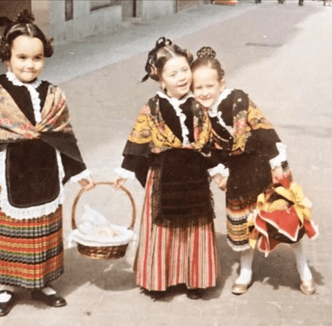 (De derecha a izquierda) Natalia, María y yo, hace 16 años. Una tradición de nuestro pueblo.