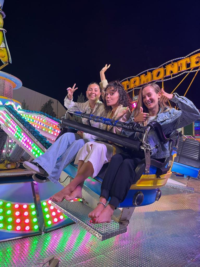 María, Natalia y yo. El Saltamontes de la feria del pueblo.