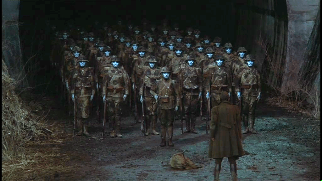 Los títulos de crédito de La chambre verte están compuestos por imágenes documentales de lo que se conoció como La Gran Guerra. Mientras desfilan, al menos cuatro veces sobre ellas se superpone la imagen barbuda, vestida de soldado y con la mirada entre alucinada y perdida del que luego sabemos será el protagonista de la película: Julienne Davenne, periodista que once años después de terminada la tragedia trabaja en una pequeñla gacetilla de provincias para la que compone necrológicas que despiertan la atención de sus compañeros: nunca repite una expresión de una a otra, son todas radicalmente individualizadas. La visión que clausura los títulos de crédito no es otra que la de los cadáveres anónimos que se apilan en una trinchera con el nombre del director de la película: François Truffaut. De esta manera se nos emplaza a considerar la relación entre lo individual y lo colectivo, entre los muertos singulares y la muerte masiva e innominada de tantas y tantas personas. Sobre las acciones del film que se sitúan en 1929 (once años después de las masacres que asolaron Europa en 1914 y 1918) gravitará la imagen de la muerte generalizada que el conflicto bélico amontonó incansablemente a los pies del ángel de la historia. También los títulos de crédito nos informarán de que el material manejado por Truffaut proviene de varios relatos de Henry James, sobre todo de The Altar of the Dead. De todo esto se extrae la idea matriz que regía inequívocamente todo el cine de Truffaut y que el propio cineasta apostilla en sus conversaciones con Hitchcock en El cine según Hitchcock: “La puesta en escena es un ejercicio de fidelidad a los muertos”.