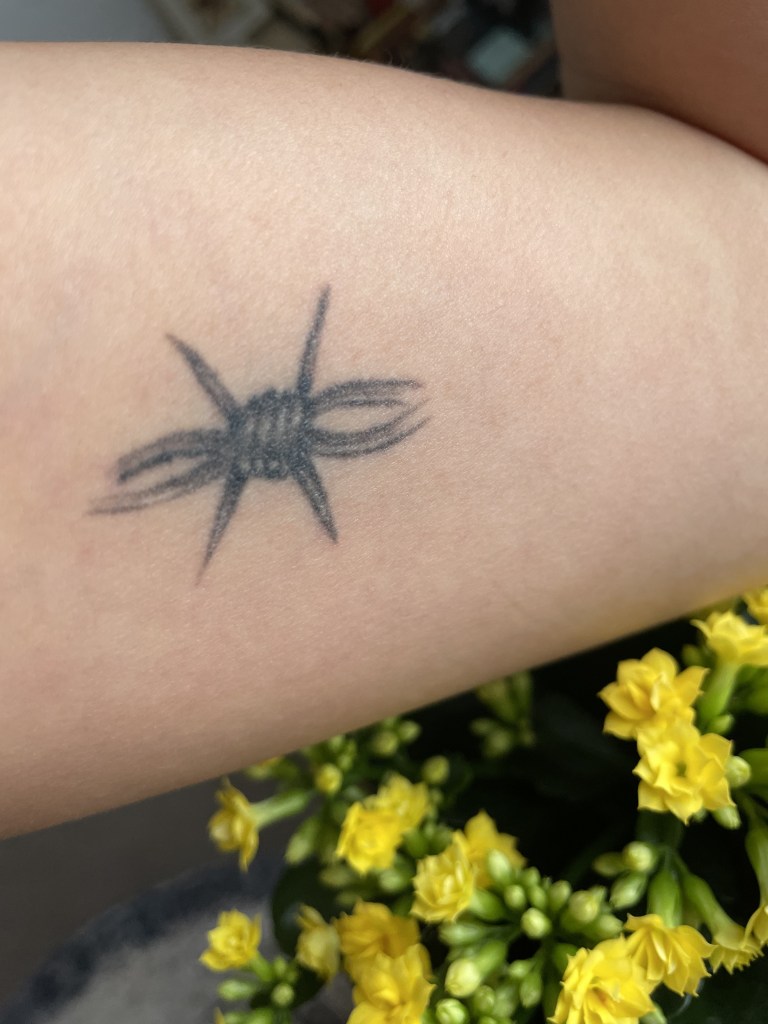 Cuando cumplí diecisiete años (el recuerdo es tan claro, yo aún era menor) Bebi decidió compartir una pieza más de su identidad; un pequeño tatuaje en el brazo, un alambre de espino. Un signo de resiliencia silenciosa, pero mortífera, frente a la enormidad de la violencia que se imprime cada día en el cuerpo de la mujer. Lo hizo, desde luego, como signo de fuerza y coraje, de generosidad, al compartir con sus seguidoras una parte más de su identidad. Un guiño cómplice, un signo de reconocimiento. Ese mismo día los estudios de tatuajes de toda España se vieron inundados por las decenas de miles de mujeres que, sin dudar un instante siquiera, se lanzaron a la calle en busca de adoptar este símbolo. Un símbolo escondido a plena vista, un mensaje claro: no te atrevas a tocarme. No te atrevas a agarrarme. No te atrevas.