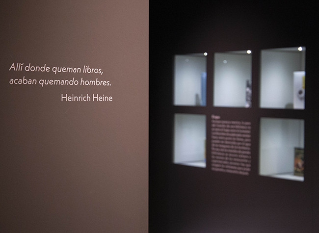 En este nuevo museo [de la BNE], ese infierno adquiere acepciones de concepto más amplias: el incendio físico, la inundación (que hace más daño que el fuego porque el libro mojado se destruye), la censura política, la censura religiosa y, por supuesto, la ignorancia, que es lo que más daño puede hacer al libro: no leerlo.